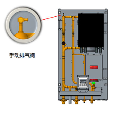 功能開(kāi)啟時(shí),首先開(kāi)啟水泵,升高水系統(tǒng)壓力,此時(shí)打開(kāi)手動(dòng)排氣閥,水路中的空氣從手動(dòng)排氣閥排出。