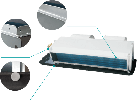 ●機(jī)身鈑金表面采用鍍鋅防腐蝕處理,結(jié)實(shí)美觀;一體式無縫接水盤,避免因排水不暢導(dǎo)致的冷凝水滲漏等問題,降低用戶使用風(fēng)險(xiǎn)。