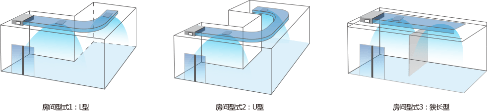 ●面對(duì)L型或U型等不規(guī)則房型,多點(diǎn)遠(yuǎn)距離送風(fēng),使每個(gè)角落都能感受到舒適愜意的環(huán)境溫度。