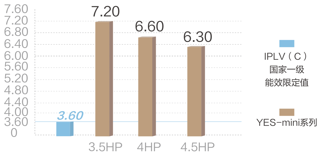 采用約克品牌直流變頻壓縮機(jī)、2000步高精度電子膨脹閥,搭載直流變頻技術(shù),實(shí)現(xiàn)高效穩(wěn)定的運(yùn)行狀態(tài),大幅提高運(yùn)轉(zhuǎn)效率,運(yùn)行穩(wěn)定高效,節(jié)能性更好。 IPLV(C)值高達(dá)7.2,有效節(jié)省電費(fèi)開(kāi)支。