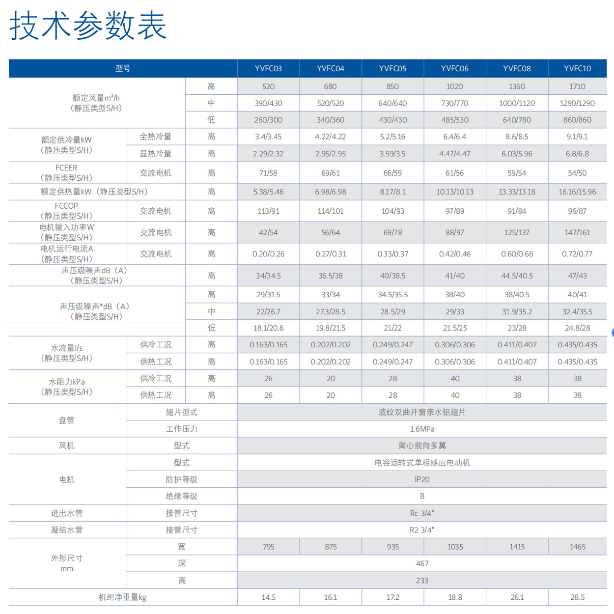 YVFC-B系列室內(nèi)機(jī)組通過(guò)美國(guó)空調(diào)制冷協(xié)會(huì)AHRI認(rèn)證。全系列擁有6個(gè)型號(hào),同時(shí)提供左式與右式安裝方式,配置12Pa與30Pa機(jī)外靜壓,標(biāo)配水盤(pán)與加長(zhǎng)水盤(pán),標(biāo)配回風(fēng)箱設(shè)計(jì),滿足各種房型的冷熱需求,安裝方便可靠; 水盤(pán)無(wú)結(jié)露設(shè)計(jì):整體沖壓式干式接水盤(pán)無(wú)焊縫不漏水,水盤(pán)外貼9mm保溫棉不易結(jié)露,特殊凹槽設(shè)計(jì)排水更通暢,采用傾斜式排水口,虹吸原理快速排除冷凝水。