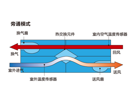 機組內部設置旁通系統,在春秋過渡季節(jié),開通旁通模式,利用室外新風去除室內熱負荷/冷負荷,并減少機組能耗。