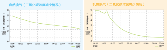 同時,迅速排除室內有害氣體。在房間內生活,呼吸排出的二氧化碳,燃氣燃燒產(chǎn)生的一氧化碳,室內裝飾、家居等釋放的有害氣體不斷的積聚,會威脅到人們的健康。及時的通風排氣,比起自然換氣更快速、效果更好。(參見下圖)