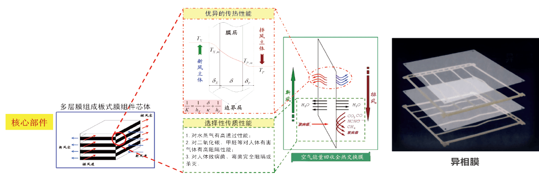 內置靜止式全熱交換能量回收芯體,回收芯體采用異相膜材料,比普通換熱膜效率高17%,實現(xiàn)高效節(jié)能的目的。