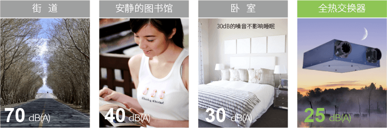 通過低噪音風機、先進的內部消音保溫裝置和空氣通道的優(yōu)化,機組噪音低。以海信除PM2.5凈化型全熱交換器150型為例,最小運行噪音僅為25dB(A), 不影響用戶的睡眠和休息。