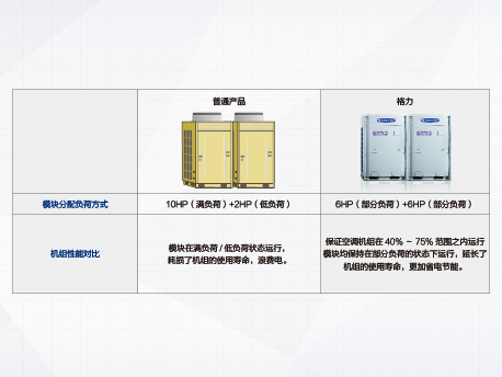 空調(diào)在40%~75%負(fù)荷運行時,耗電量較低,GMV5能合理分配各模塊輸出能力,運行負(fù)荷超過75%時,自動增加一臺模塊運行;負(fù)荷低于40%時自動關(guān)閉一臺模塊,有效延長機組壽命,時刻保持低耗電運行。 |