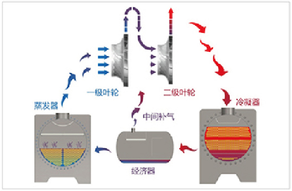 雙級壓縮補氣技術(shù)相比單級壓縮具有以下優(yōu)勢: