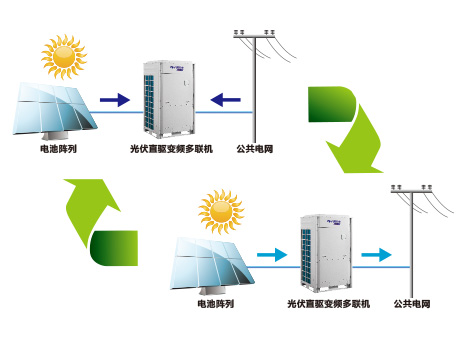光伏與空調(diào)無(wú)縫結(jié)合,機(jī)組用電自給自足。