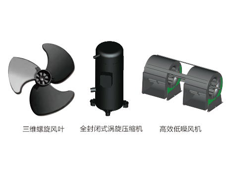 全封閉渦旋壓縮機,搭配三維螺旋風葉,噪音更低;高效低噪離心風機,大直徑離心風扇,雙風機結(jié)構(gòu),增加風量的同時提高機組外側(cè)靜壓,大大降低噪音。